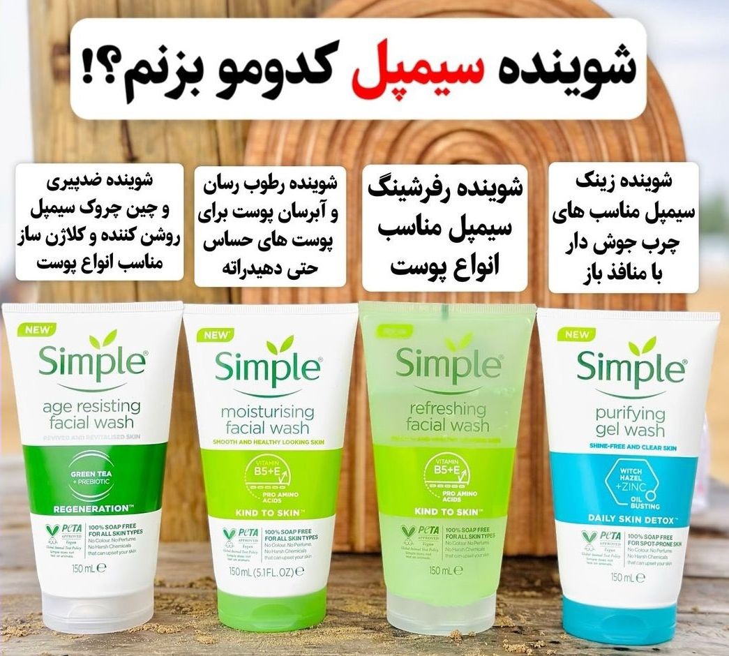 برند انگلیسی سیمپل simple در سال 1960میلادی در زمینه تولید محصولات آرایشی و بهداشتی شروع به کار کرد. این برندباتولید محصولات باکیفیتی و جلب رضایت از مشتریان در سرتاسر دنیا مورد توجه قرار گرفت. برند سیمپل با کارشناسان مجرب پوستی خودو تولید تمامی محصولات سیمپل بصورت گیاهی . موجب شده همه مصرف کنندگان برند simple با اطمینان از محصولات سیمپل استفاده کنند.اگر طرفدار محیط زیست و حقوق حیوانات هستید از مزایای بسیار مهم برند سیمپل simple فاقد تست حیوانی بودن آن است.